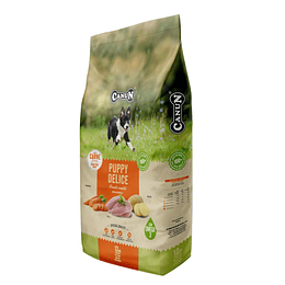 Con salmón y papa como ingredientes principales para minimizar el riesgo de posibles intolerancias o alergias alimentarias y asegurar un correcto crecimiento y desarrollo del cachorro.